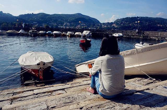 我们导航选错了地址,开车到达后发现。。酒店在河对面。哈哈没错,我们酒店和我们之间隔着的就是科莫湖。我们正好开到的是船舶港口,之前我介绍过,我们酒店对面就是小港口,所以我们将要开车渡船回酒店。最搞笑的是,我们后面一辆车,询问后得知她和我们一样走错路,也需要乘坐船只到对岸的贝拉尼奥