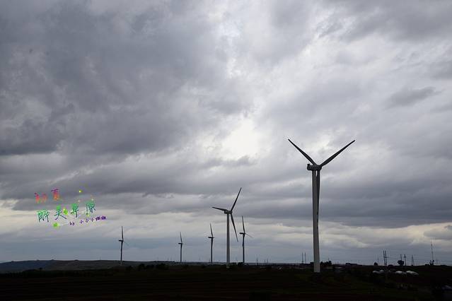 阴天下的风车阵,失去了些许白色的浪漫,却独添一丝诡异的凝重,巨大的扇叶像勇士一样,对抗的迎面的狂风