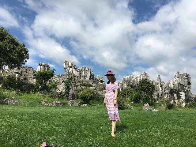 昆明平均海拔1865米,石林方阵位于昆明东南约60公里的石林县,这里海拔2000多米。早上6点起床,感受到一丝入秋的凉意,无奈济南现正处酷暑时节,没想到居然来到了避暑圣地呢;