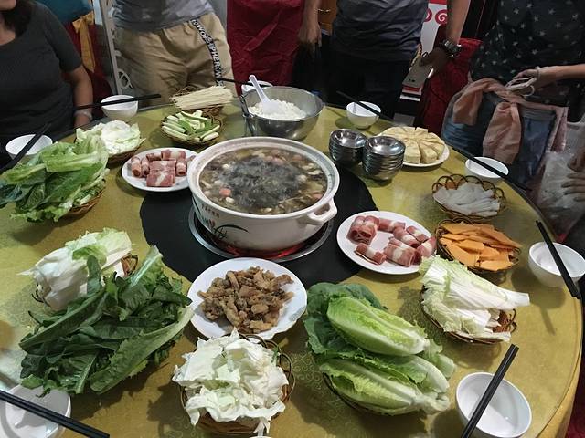 很丰富的野山菌火锅,但是要熬的时间久一点,汤也很鲜美。就是北方人会有一点吃不惯的是,它的酱料,没有麻汁,没有腐乳,有的只是基本的蒜泥、酱油、醋和泡椒。