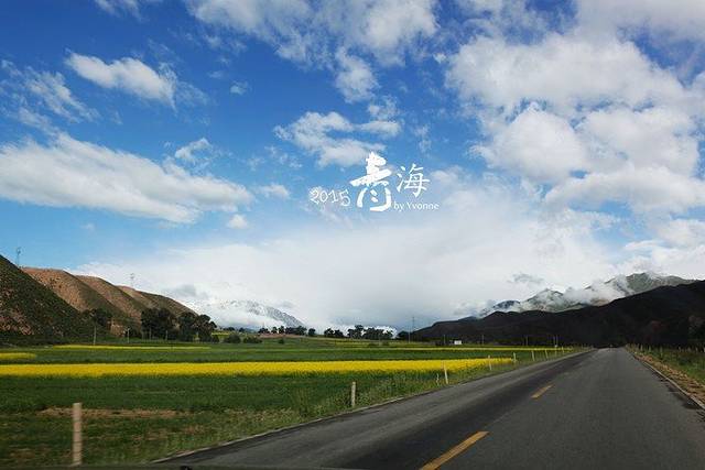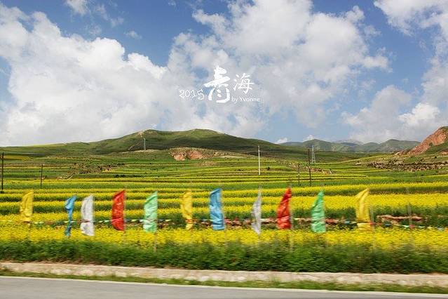 张掖-门源,路经民乐县,路边到处是花海,温度上升,一个字“热”,远处能望见遥遥的雪山,妞爸说:翻过昨天的八一冰川,开过昨天的213省道,心中已无山,脚下已无路!