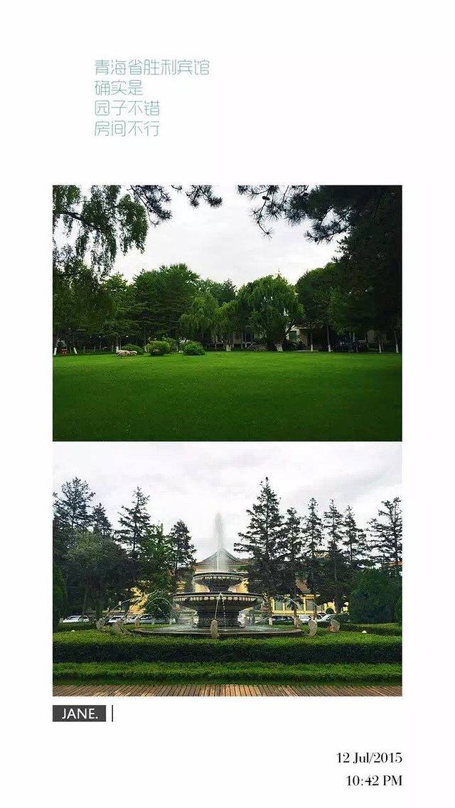 青海省胜利宾馆:名气蛮大的国宾馆,酒店内环境确实棒棒的,是分楼栋的房间设置,因为楼层较低,所以没有电梯设置,住宿条件因为我们拿的是经济房型,因为价格便宜贝,所以房间稍嫌小,洗浴间也很狭小,使用有点不方便;但是配套的沐浴用品倒是蛮高档的,而且早餐也相当丰富,感觉还不错,值得推荐。关于停车这里要特别说一下,一开始以为酒店内可能过小所以不提供停车服务,结果发现园子挺大的,完全可以把车开到住的楼下停好;千万不要停在酒店外的一个收费停车场,关键上面还写青海省胜利宾馆停车场,真是坑爹!