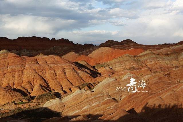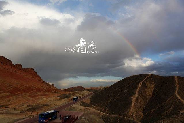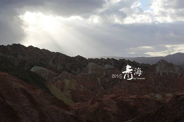 张掖地质公园,由于到达时间比既定时间晚了很多,已接近6点,加上大片乌云密布,一颗热情的心瞬间全冷了,七彩丹霞就是要阳光普照才能领会到精华所在,现在怎么办?但是别无选择,吃过早晚饭后,硬着头皮进入不算理想状态的景区,结果被告之景区7点以后不再售票,怎么办?其它游客也在景区门口闹,说不合理,结果跟景区人员交涉后,每人多收10元放行进行景区,算工作人员的加班费,尼玛!果然老天还是不帮忙,本因浓郁的甘肃大西北风情完全没有好好表现出来,但是我们看到了彩虹,妞乐开花,还对这独特的丹霞地貌很感兴趣,不停地惊叹,赞叹大自然的鬼斧神工。看张掖丹霞最好是刚刚下过雨出太阳,雨水染湿石头,金光一照,那个浓郁的味儿就出来了。