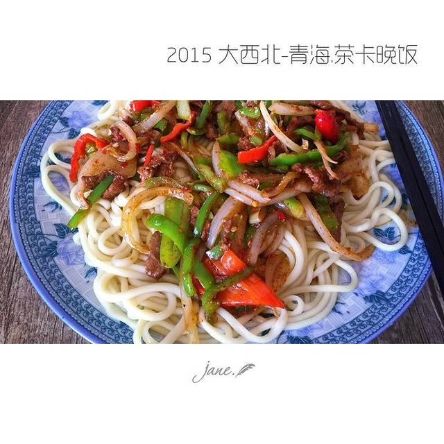 这是今天吃的唯一一顿饭,茶卡附近的农家孜然羊肉拌面,这里的面和米都煮不熟,因为高海拔的原因,都是夹生的。