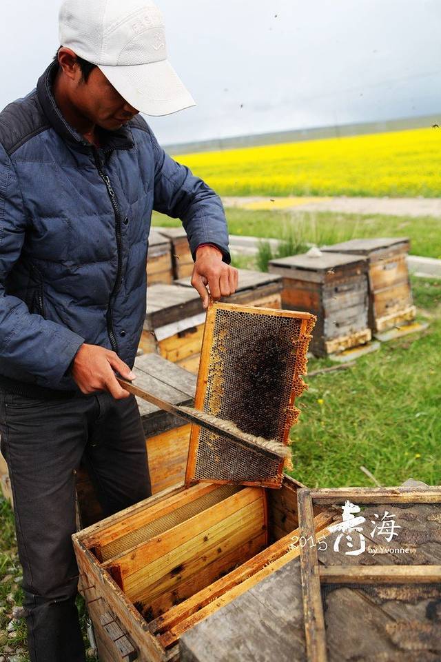路边已经能看到无数片的油菜花田,和蓝天白云相映,非常美好,我们停车购买现场制成的油菜花蜂蜜,继续赶往祁连,期待不一样的画卷。