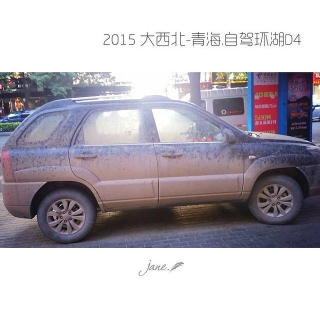 去过八一冰川后,车身脏的就象个咸圆子,到达张掖市里时,不禁博得回头率100%,多亏是晚上,不然这样子进市也太招摇了,一早起来赶紧去洗车,话说人家洗车都是细致地道,车外车内擦的一丝不苟,也浪费了我们不少时间。这是翻越雪山前后的车身对比,哈哈,可以想象吧,这路有多难开。