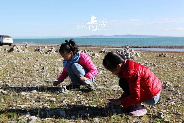 清晨的青海湖边安静纯美,只是我们要赶路没有太多时间沉静在这一切的美好中,湖边的尼玛堆,孩子们是第一次亲眼看到,我也是……堆一个许个好心愿。