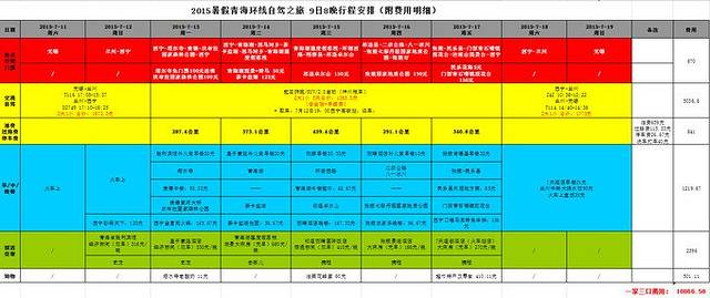 西宁-贵德-青海-茶卡-张掖-祁连-门源-西宁,全程自驾1750公里,翻过两座雪山,在没有任何标记的道路上体验off road的乐趣。实际青海环湖5天整:D1 看寺看水库,D2 看湖,D3 看草原看雪山,D4 看冰川看丹霞,D5 看花海。 最后附上本次旅行的行程安排及费用清单,往返交通和自驾租车费占去一半的盘缠: