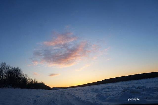 第一个晚上在北红村睡觉。食宿都由司机安排,需要负责司机的吃。车子会驾驶过黑龙江的冰面。在漠河冰上面,那些当地人会凿洞调鱼,记得买,因为当场买的鱼肉特别鲜嫩,特别好吃。然后让吃饭的地方帮忙烹饪一下。