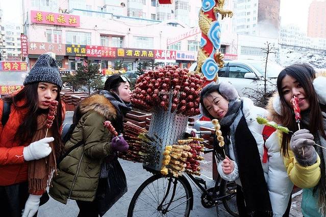 我们去了吉林的江边,看到一群小孩子和大人在那里打溜溜球,还有在雪地里玩滑滑梯,拿着一块板垫在屁股下面或者坐在板凳上面。这里是因为一群鸭子而出名,传闻以前有个大叔每天都来喂鸭子,所以在江面上的鸭子都是成群成片的。绕了一段路之后我们紧接着就去了大教堂,吉林的大酱骨还有锅包肉,都挺好吃的。我特别喜欢吃东北的冰糖葫芦,原因是和我们这边的感觉不一样,由于天气冷,因此东北的冰糖葫芦咬起来都像是在咬冰淇淋的感觉,东北的冰淇淋的确在室外就可以存活了。原因还是那个,室外温度好低。哈哈。一定要尝尝冰糖葫芦。当然千万不要去中央大街买,因为真的超级贵。