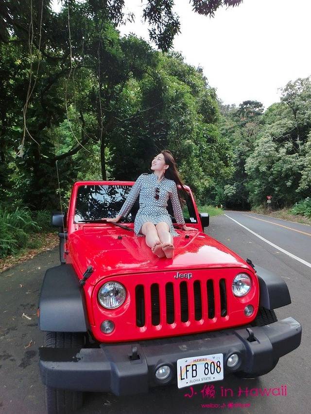 一下飞机,就去dollar把车提了,太幸运啦,居然租到了红色的撒哈拉~哈哈,而且是店里今天仅存的一量红色。按照计划,机场出来,一路直奔 HANA 小镇,一走上HANA ROAD的大道,车窗两旁的无限风光引得俩位妈妈讚叹练练,不断的要求在路旁停车,他们要拍照~~~哈哈,看到妈妈们向孩子一样开心的大喊大叫,我俩心满意足。哈纳公路,是一条沿海公路,一路弯弯曲曲,大部分的时候一麵是山一麵是海,偶尔也会穿越丛林和山涧,之前和花卷走过美国的一号公路,所以在我看来,哈纳公路真的很像美国一号公路的MINI版,隻不过更為神秘和原始一些