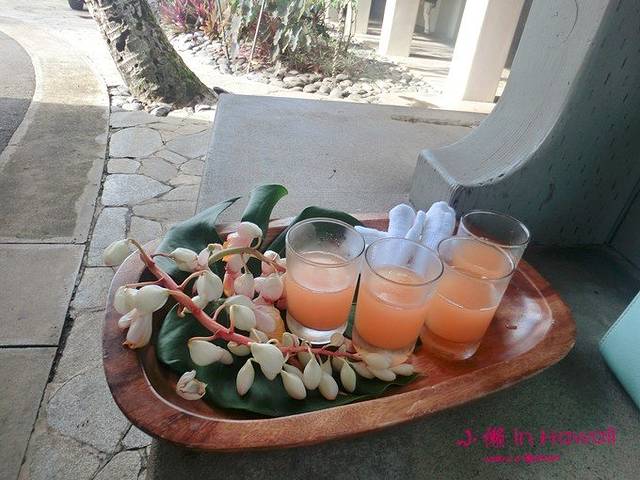 我们的车一到度假村门口,侍者就来接应,為我们端来了解渴的果汁和表示欢迎的项链~~瞬间觉得,这票子花的值!哈哈~~好人性化的赶脚。