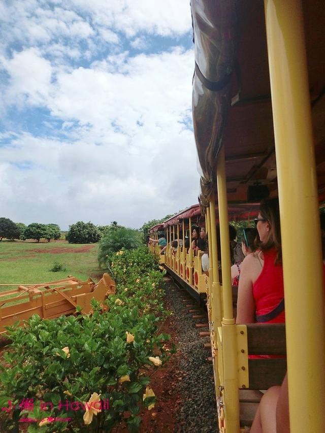如果不是强迫症如我的伙伴,意思意思就可以去坐小火车观光了,毕竟没有多少游客向我们一样在菠萝园可以玩一整天的~小火车凭票入场,观光过程中,小广播一直在讲路两旁的土地中的植物和一些干农活的工具balabala,然后又一直在讲DOLE菠萝园是怎么成立的,菠萝之父怎么发家致富的BALABALA,一路吹着小风,跟着音乐,即使听不懂讲解的妈妈们也是很嗨皮~~~