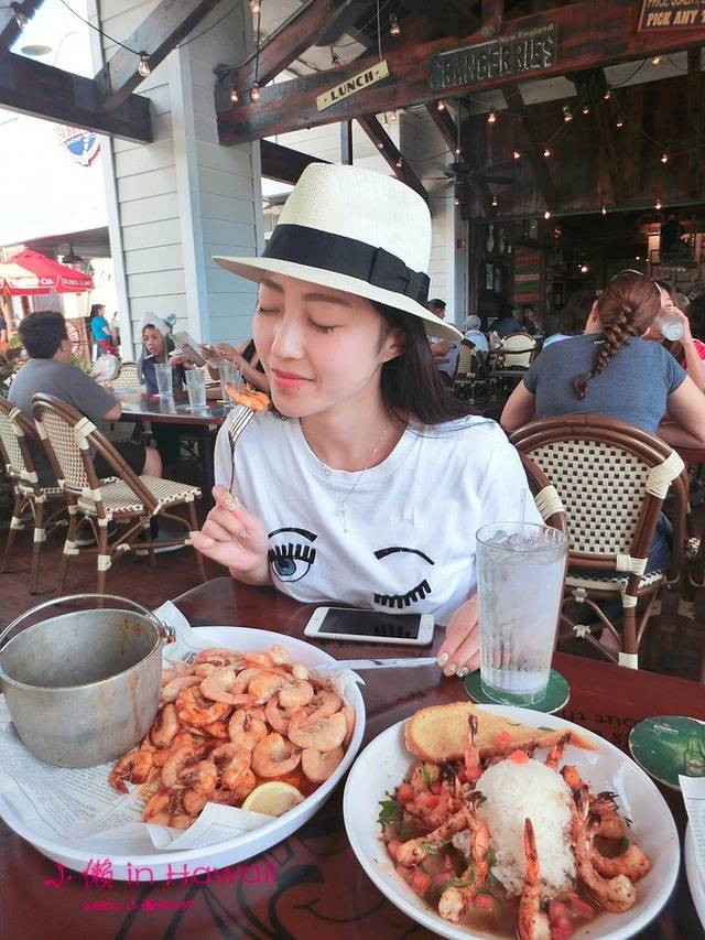 在北京就很喜欢户外就餐,只可惜春天只有短短的几天能户外吃东西~~在夏威夷就完全不会有问题,气候非常好,餐厅是半开放式的,开着风扇不冷不热,非常舒服~空气好胃口就好。