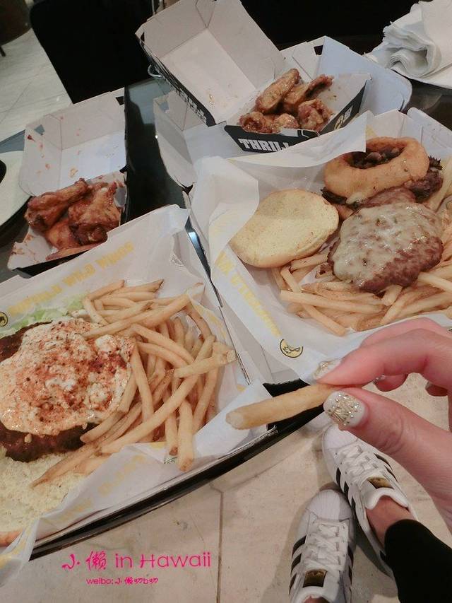 然后去了那家BUFFALO WILD WINGS,打包了四人份的汉堡和鸡翅来吃。真的非常好吃,非常美式,但是丝毫不油腻。如果打分的话,是目前为止吃到的最棒汉堡,当然仅仅次于在毛伊岛后山路的那个小木屋汉堡。