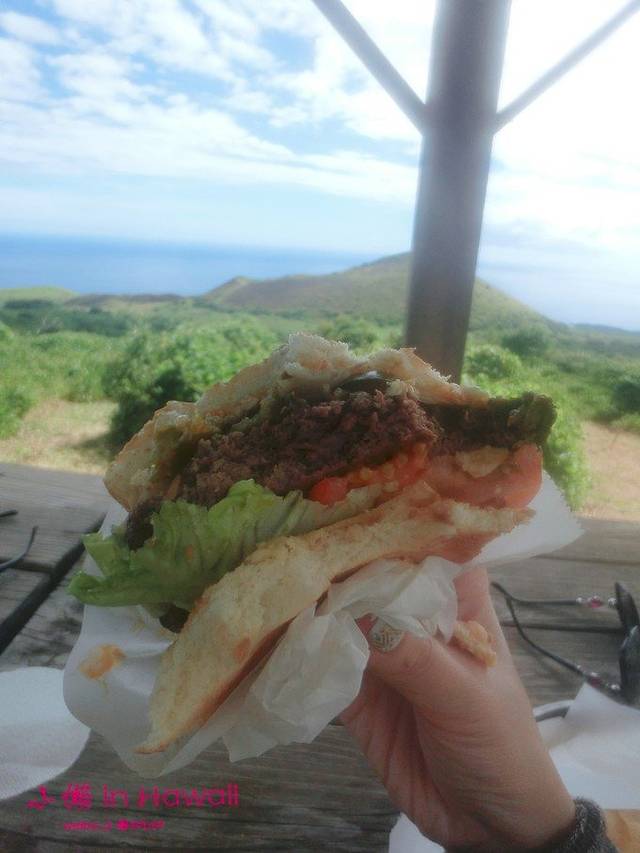 如果不亲身前往永远也想不到,几分钟之后,我们在这个偏僻的小岛,几乎和外界隔绝的后山之路、一个普通的汉堡店、肌肉男厨师、简易的烧烤架,就在这,竟然吃到大概此生最美味的汉堡了,牛肉鲜嫩多汁,酱料味道很正,配料足,麵包都是外酥内软!真真的如泪盈眶,这是我自发朋有圈时的用词,现在回味起来,光想一想就足以大流口水。