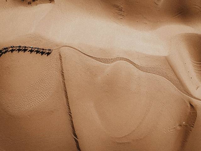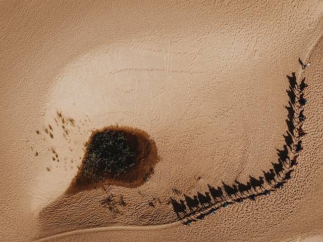 航拍沙漠驼队