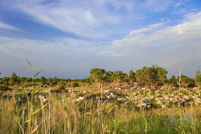 路遇了放养的羊群。