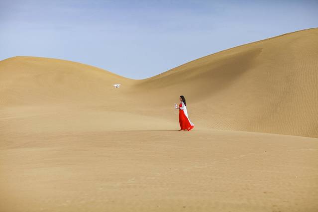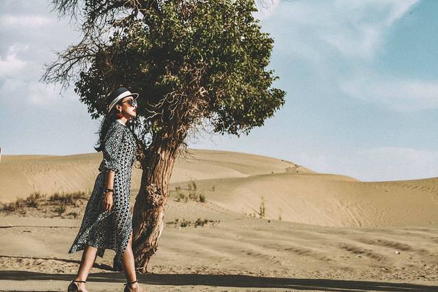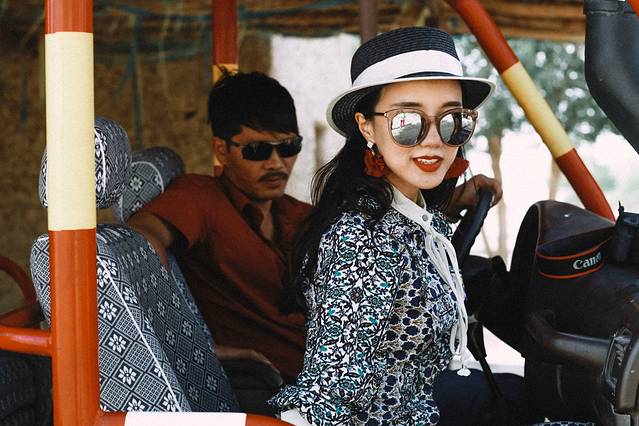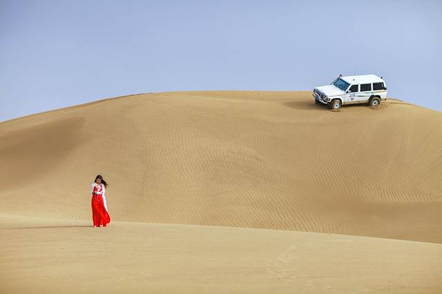 这次沙漠之旅,我发现了之前我们设计的白色真丝衬衫裙的另一个妙用——做外套。刚好可以遮挡住手臂防晒,同时起风时也有一点防寒的功效,棒棒的!而且起风的时候,飞起来的衣角,帅一脸!(自家广告植入:品牌lovinsunshine,欢迎大家自行搜索某宝关注)