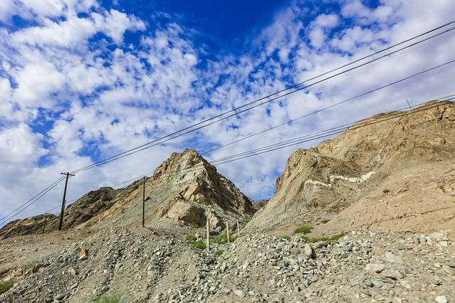 沿途,就是一番新疆石头山景象。苍凉,天蓝。