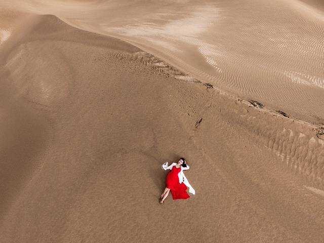 这两种都是我在lightroom里调出来的颜色,我个人很爱胶片风,但是红裙的沙漠照不太适合胶片感,所以第一天和第二天的沙漠呈现出了两种截然不同的画风。请大家原谅我的任性……