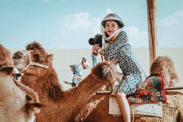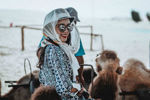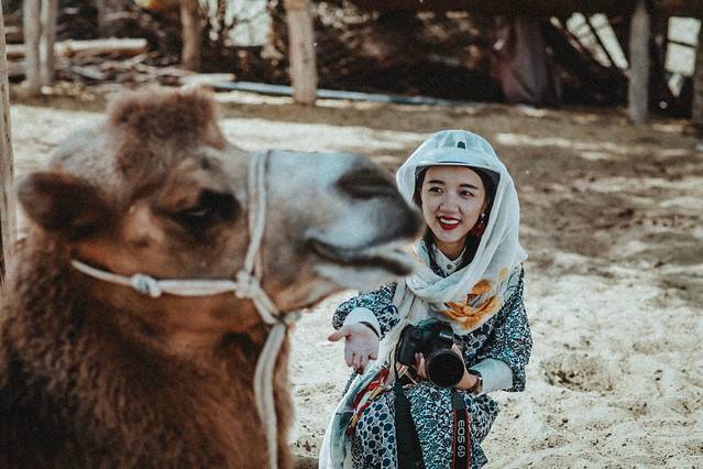 骆驼很温和,也没有什么味道。虽然我第一次在动物园以外的地方接触骆驼,还有些小小的紧张。前行的时候会有人牵引,走的很慢很缓,不会害怕或不适。就是要记得拿头巾把自己包好防晒!