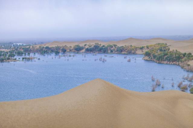 当时还挺失望的,觉得运气不好,遇上了雨天。沙漠一片雾蒙蒙的,虽然不算大雨,却也实属沙漠比较少有的天气了。