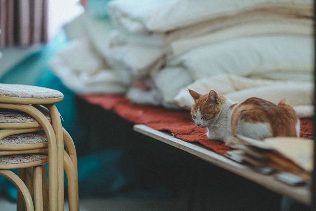 进来躲雨的时候,发现了这只猫和她的三只小猫。当时我惊异于这样恶劣的自然环境里,它们居然也能存活下来。进来时它们喵喵喵地叫,还以为它们肯定是饿坏了,结果喂它们吃螃蟹和鱼,却也不太感兴趣。大概是吃老鼠吃饱了吧!存在必有原因,能够存活自然也是符合自然规律的吧。