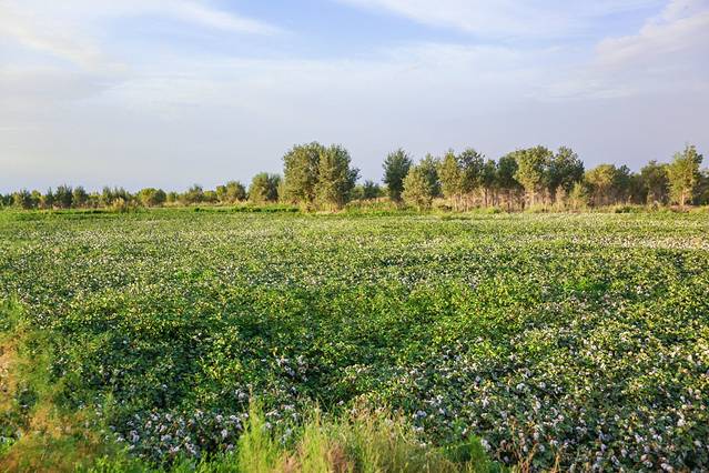 很美的棉花园,这是我第一次看见长在地里的棉花,原来是这样的。