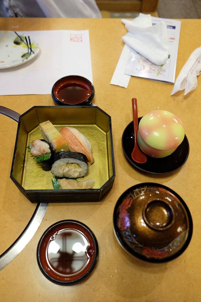 晚上的时候小凉菜特价,500yan三份,我们刚开始的时候不太清楚,只拿了两个,店员热情的说了一大串日语后,看到我们迷茫的眼神,又走出柜台指着边上的优惠牌一通比划,这种服务态度,在日后我们越来越觉得习以为常。但在回国后,却再难见到。