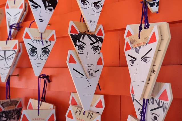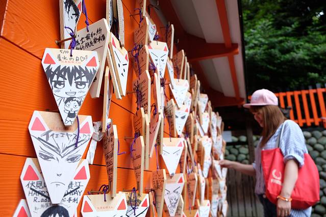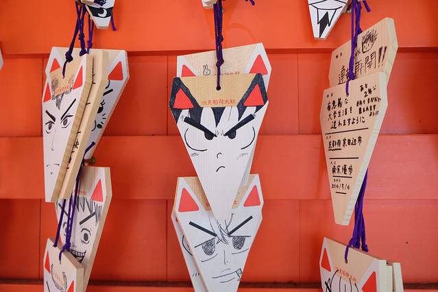热门度不亚于千本鸟居的狐狸绘马,各个动漫角色齐聚一堂,各种尖下巴。