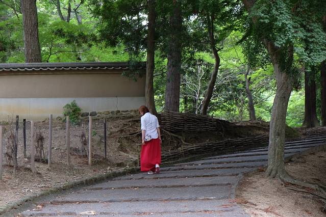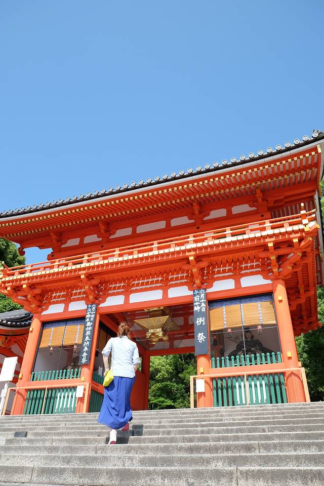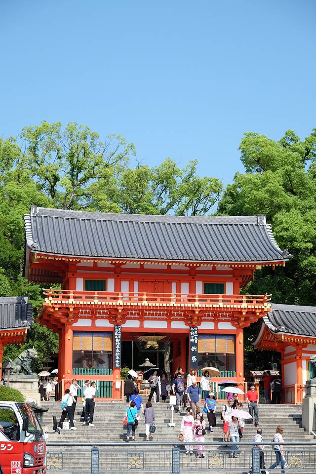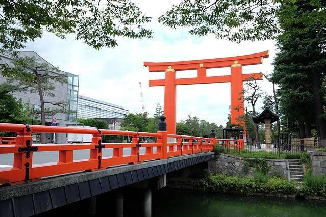 途经平安神宫,门口一瞥,也是美的很,所以说在京都的话还是要住在东山区啊,随随便便的闲逛也可以让喜欢古迹的人一饱眼福。植物在夏季特有的生机感,搭配着日本古迹的橙红色,怎么看都是绝景~