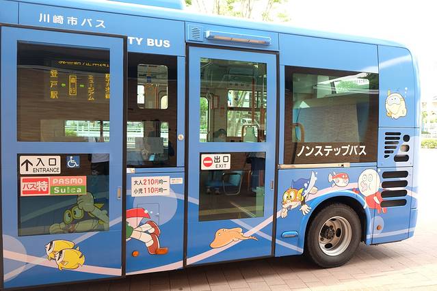 出了电铁后换乘的直达博物馆的公车 车内各种细节都是藤子不二雄元素 开始带着人们进入这个充满想象力的世界