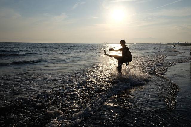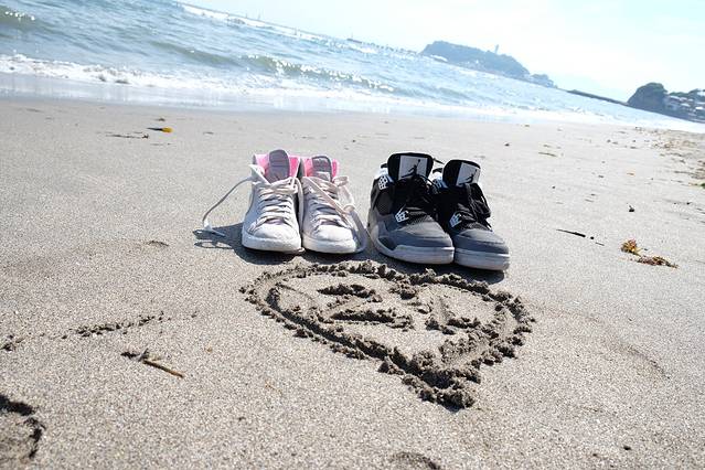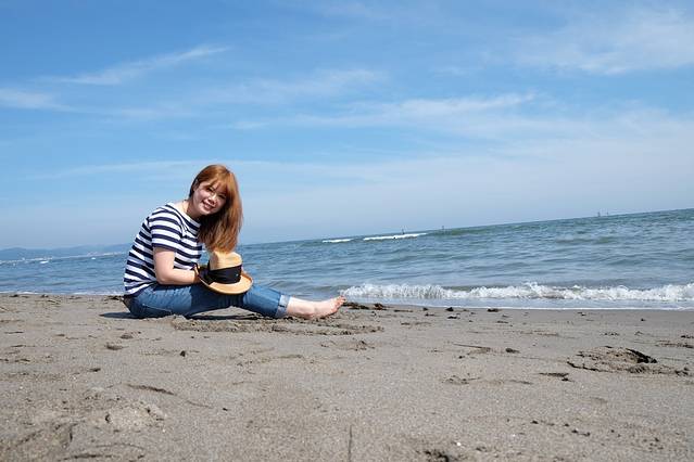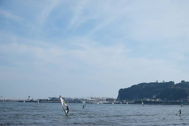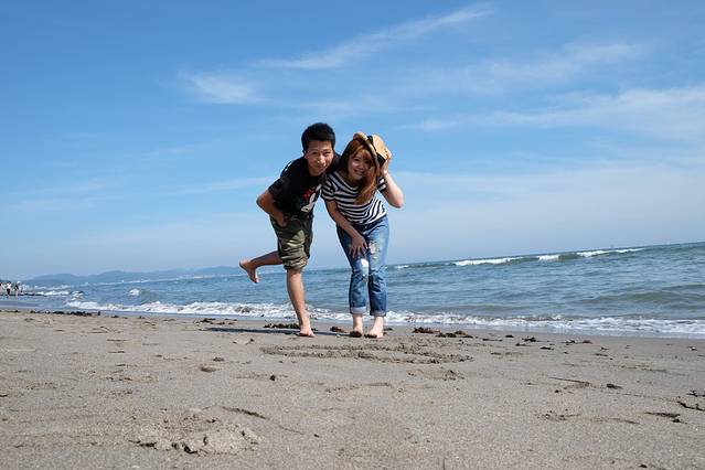 镰仓高校站附近的海边,完全没有什么人,沙滩自然没有想象中那么干净,不过也绝对比人山人海缺乏管理的北戴河要强上不知多少个档次。
