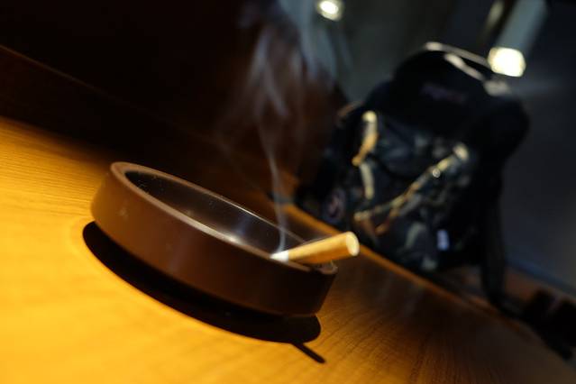 吸烟的桌子,一目了然吧。避免用餐的人会被烟味影响。