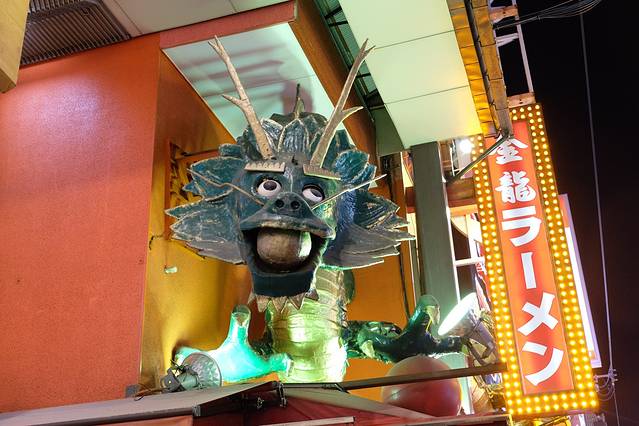 各种灯箱,各种特色,还是因为人生地不熟外加两人都有点内向,走来走去,最后选择了金龙拉面,不为别的,就因为服务员会说中文……