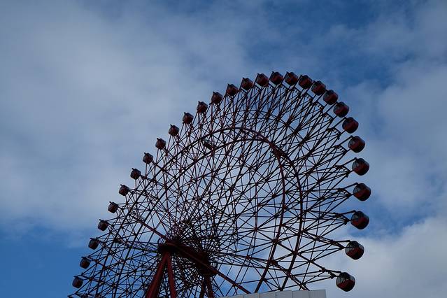 日本人很喜欢摩天轮啊,连这个不大的动物园里也有这么个小小的摩天轮,颜色是那种浅浅的,和Hep Five的大红色形成鲜明对比,就好像大阪和京都的对比一样。