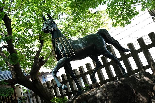 一圈走下来,不大的地方,除了我们没有其他游客,略显落魄的神社,只有几棵大树一股脑的往上生长以外,稍矮的绿植则都杂乱无章的生长着。小小神社内,连看门的人都见不到,这马却没有一点污浊,是因神社的庇护吗?