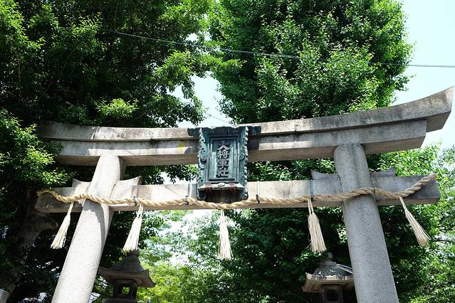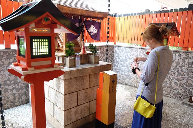本次日本行遇到的第一个神社,街道另一侧就是商圈街道,被道路隔开,小小的鸟居一个个排列起来也有模有样。