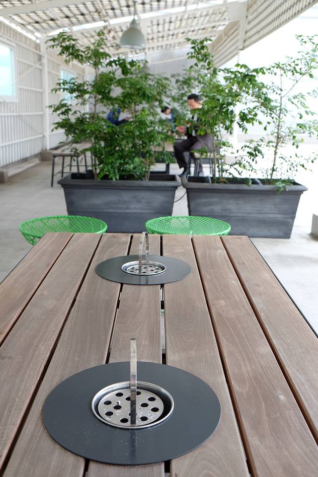 到达乌丸后的某商场顶层。对,就是前面提到的可以吸烟的商场顶层。不像咱的商场,逼的人在厕所里吸烟,这里的设计很赞,除了作为吸烟区以外,还同时作为商场员工的休息区和饮食区,猜想应该是日本的商场不会允许员工在商场内部吃饭,中午到达这里的我们看到三三两两的员工在楼上边吃边聊,周边还有自动贩卖机,除了街上那种卖瓶装饮料的之外,还有具备可以设定糖奶量,是否需要加冰的自动贩卖咖啡机。