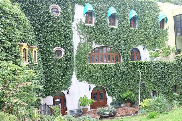到达三鹰之森 整栋建筑被绿色所覆盖 大到建筑门窗 小到水管、把手,随处可见宫崎骏风格~