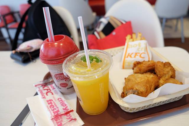 黄色的饮料是KFC海边店限定的夏季特饮,味道还不错~