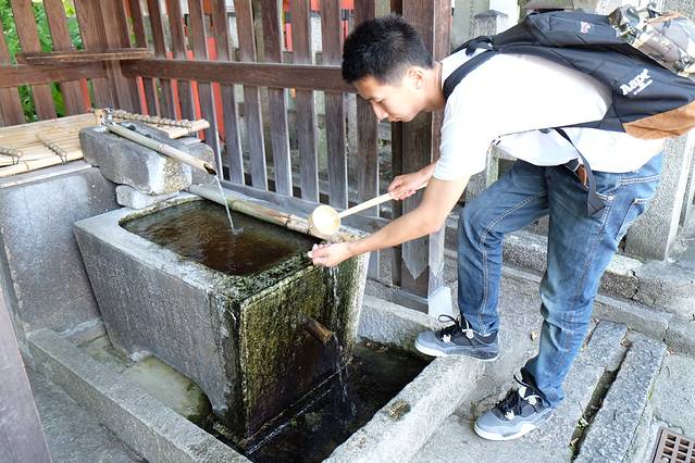 遇到的的第一个真正独门独院的神社,自然要好好净手,边净手边被蚊子咬,你还要我怎样虔诚。