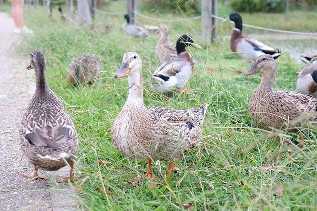 不怕人,是日本动物的共同点。奈良的鹿也好,这里的野鸭也好,看到人根本不会躲闪,霸道的很。