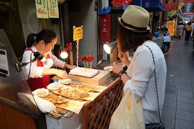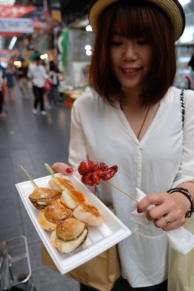 从道具屋筋往东走不知不觉就走到了黑门市场,已经是下午了,既然到了,就寻些小吃吧。