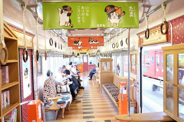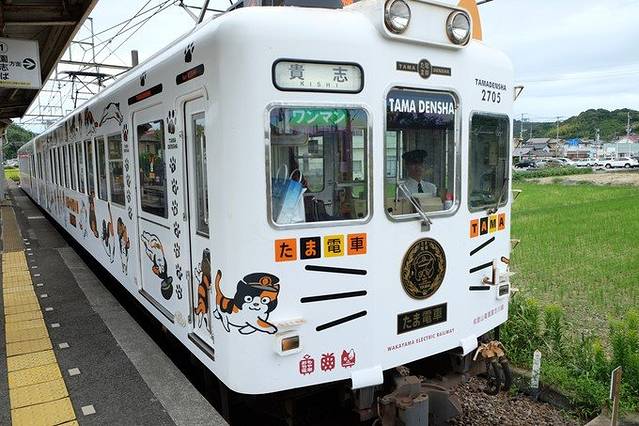 和歌山站换乘贵志川线,猫馆长的形象就开始随处可见了。