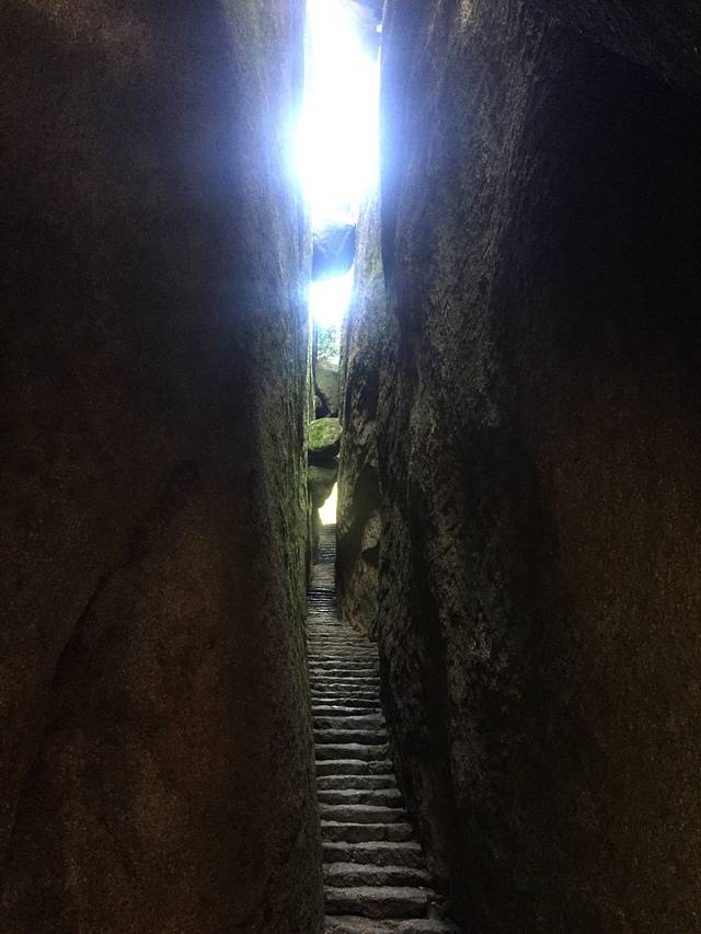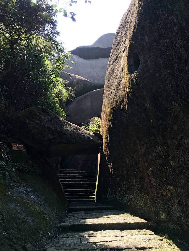天柱峰是太姥山推介景点,所以我们选择这条路先行。去过之后,我想说大盘石和天柱峰千万不可错过! 而亲嘴岩则是两块巨岩像亲嘴一般含蓄相碰,这一路都是钻洞行走,与一片瓦景区的洞穴相比,这里的洞穴更加的陡峭密集无光,如果身材肥胖的人,建议在天柱峰之处行走观海栈道。免得被卡在中途,略显发愁。