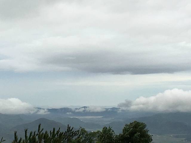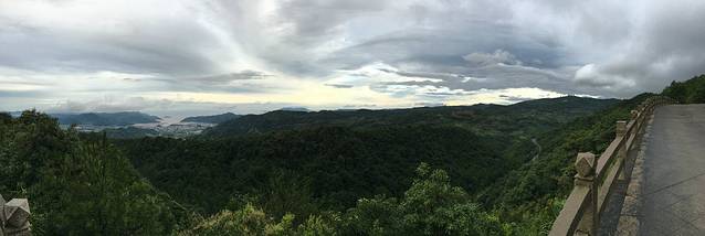 到达太姥山的时候正下着大雨,可是当景区巴士开往景区停车场的时候,蒙蒙大雨也停止了。远处太姥山的美景在雨雾中露出端疑。天仍是灰灰蒙蒙,水雾在山间顺顺溜溜得滑动,刹是一种好看。