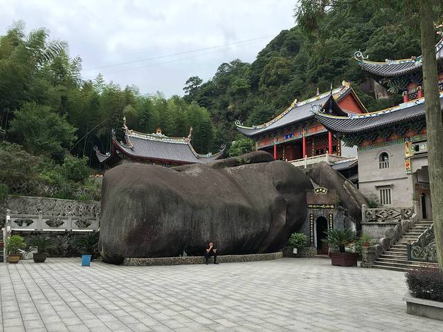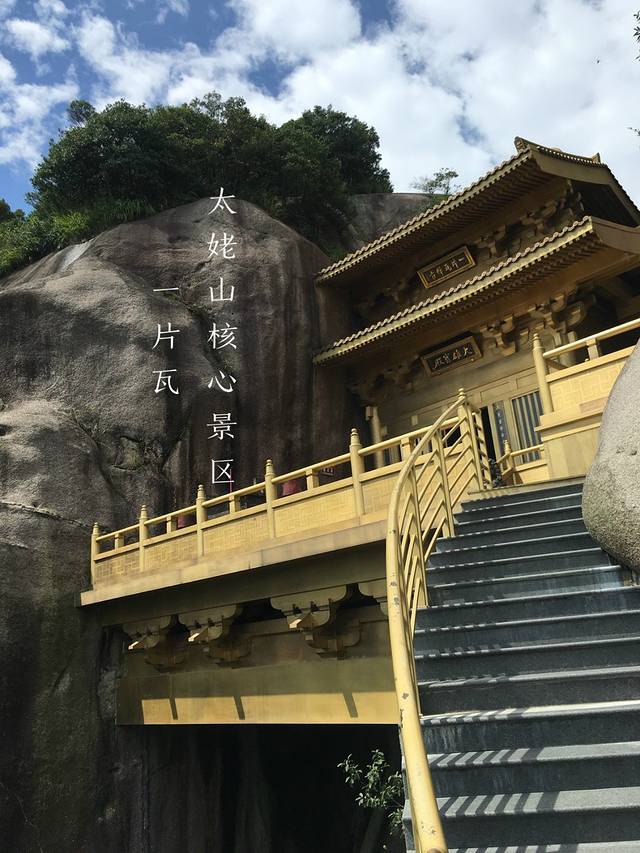 供奉太姥娘娘,悬空铜寺。在一进入风景区的时候,就能看见远方山上嵌在两块巨石中间的悬空的庙宇。