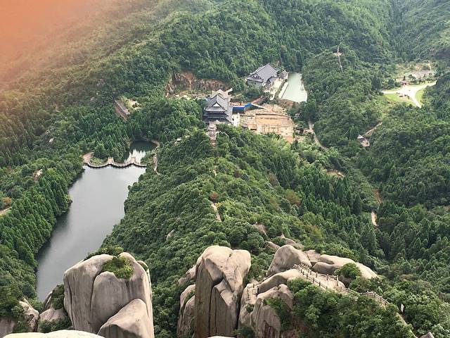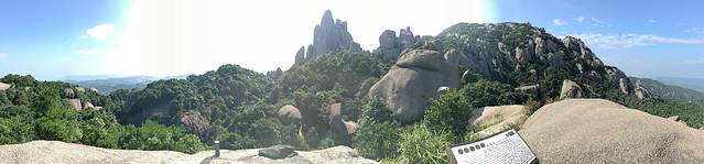 从乌龙岗直上覆鼎峰,覆鼎峰是全景区最高的地方,海拔917.3米,一号观日台,附近有一个电视台招待所,标间120元(住宿条件不详),如果有想住山上观日出的游客,这里是一个不错的点。接着继续走的行程就是下山的路段,来到左半边游玩的路线。此时差不多是下午一点的时间。